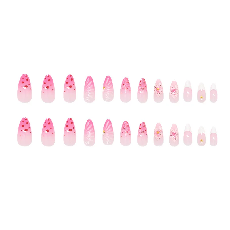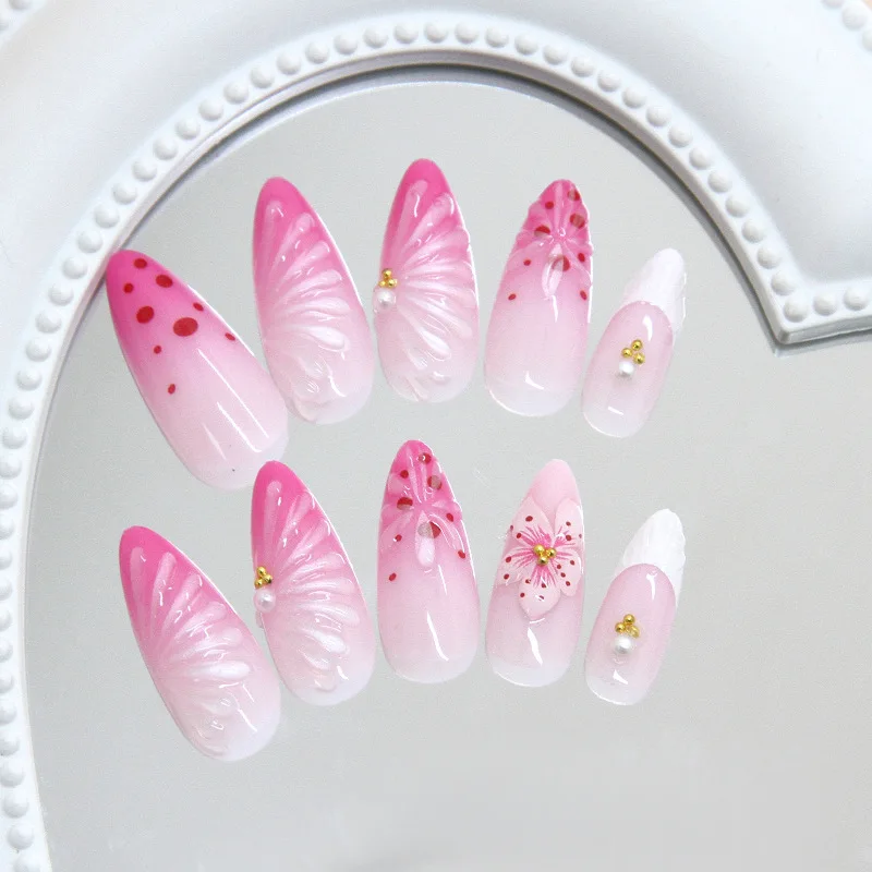 24pc Luxury Almond False Nails Set 3D Lily Ice Flower Design ABS Plastic DIY Salon Press on Nails
