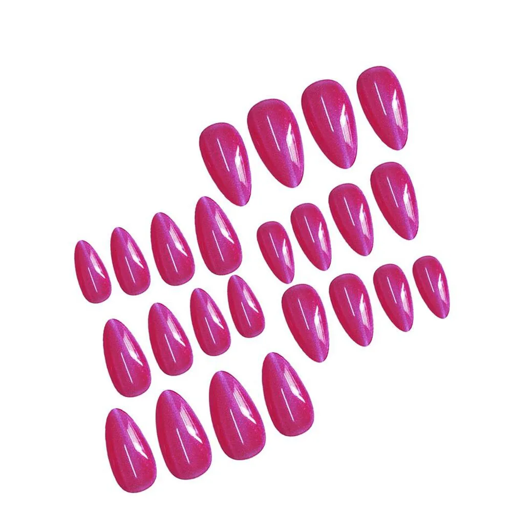 30pcs Rose Red Cat Eyes Almond Fake Nails Simple DIY Manicure Press on Nails Glossy Stick-on False Patches for Women