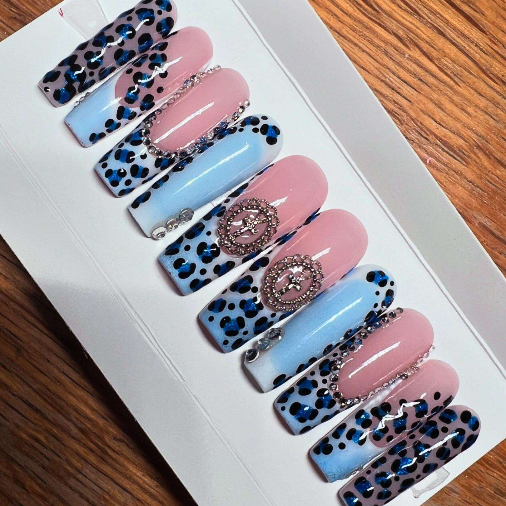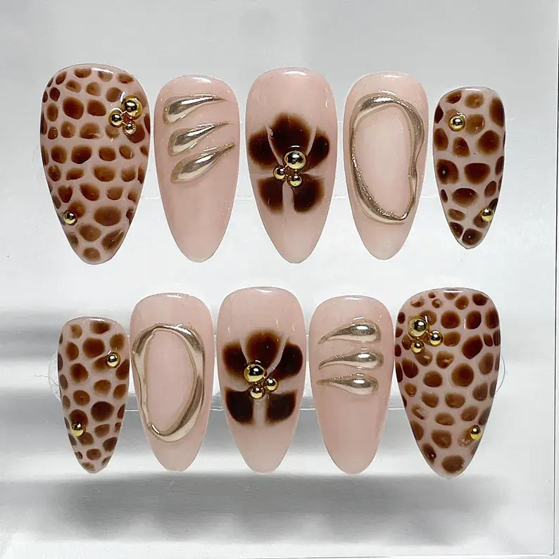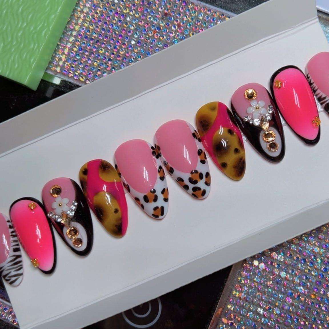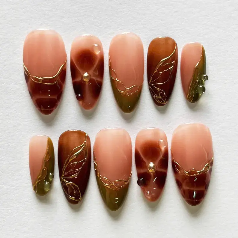 3D High Quality 10pcs Summer Ocean Style Wholesale Almond Stiletto Luxury Handmade Press on Nails Supplier