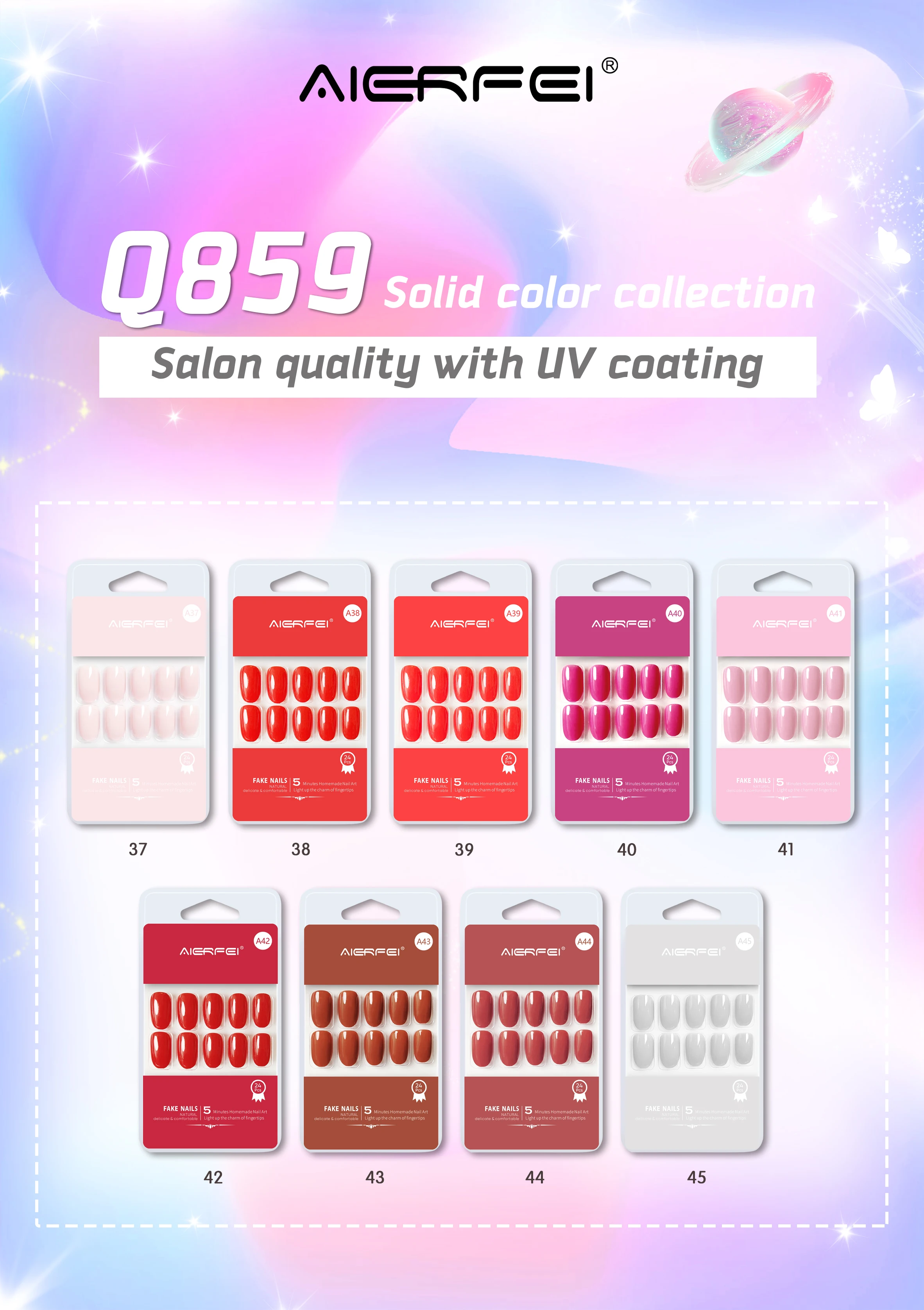 product name:: 24pcs Solid color press on nails