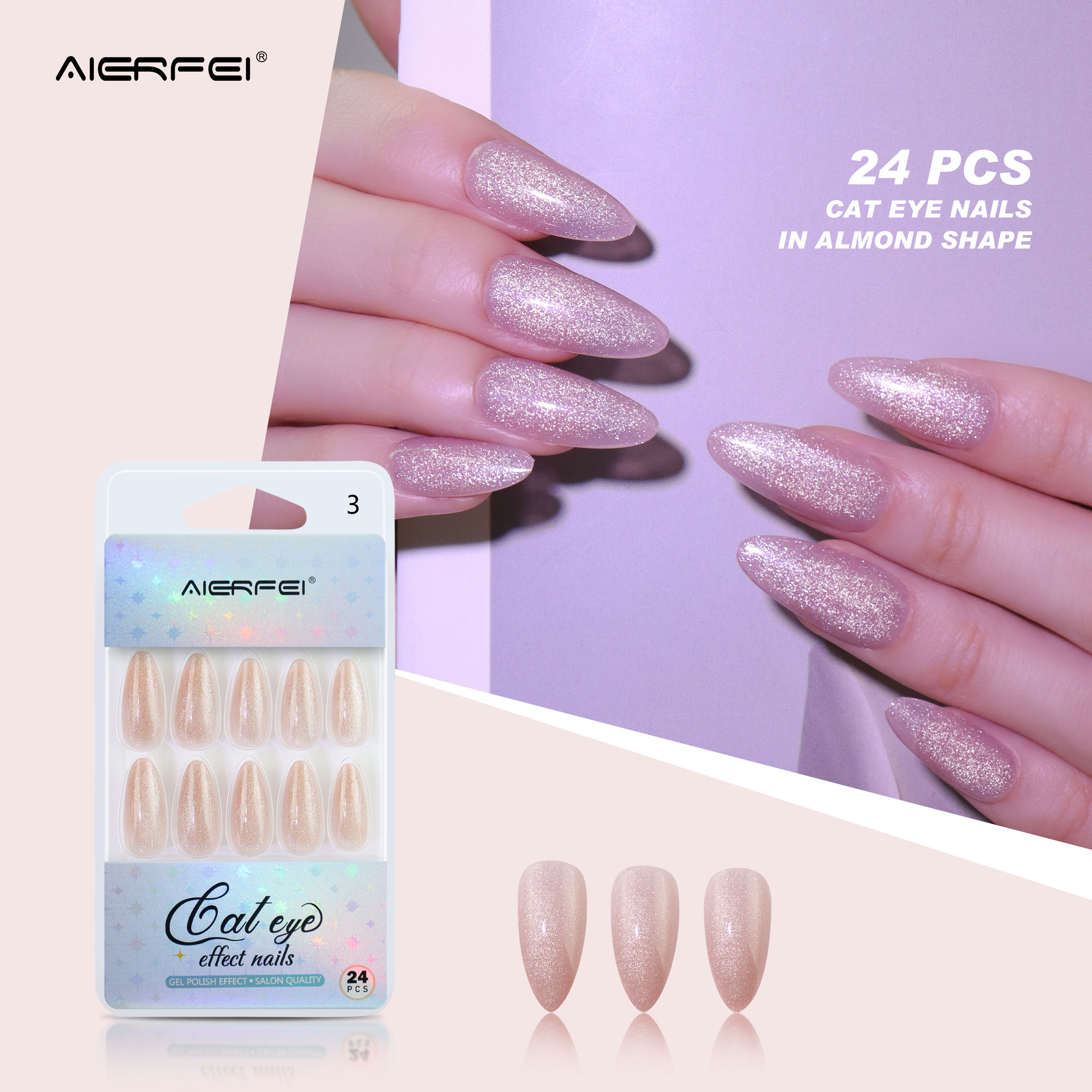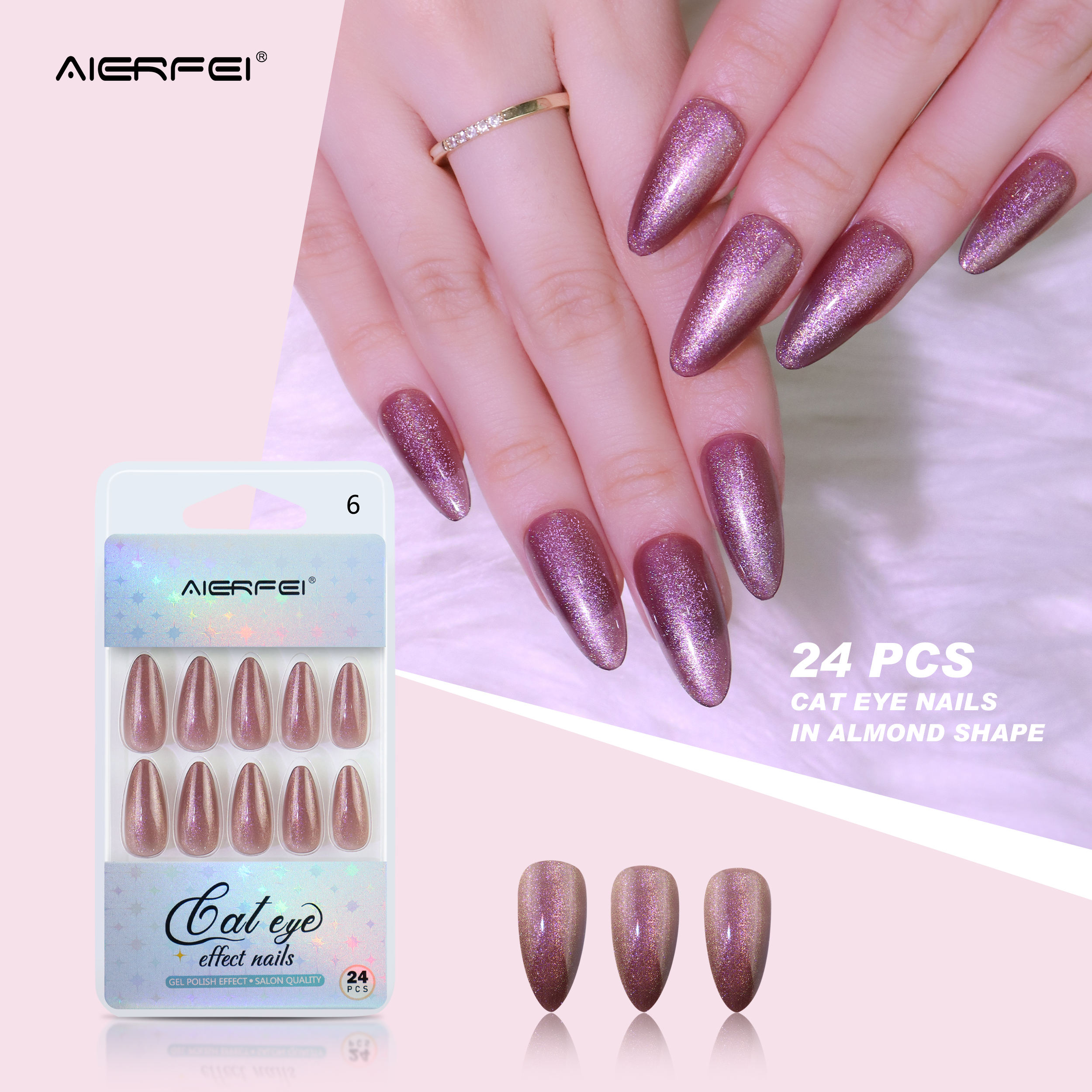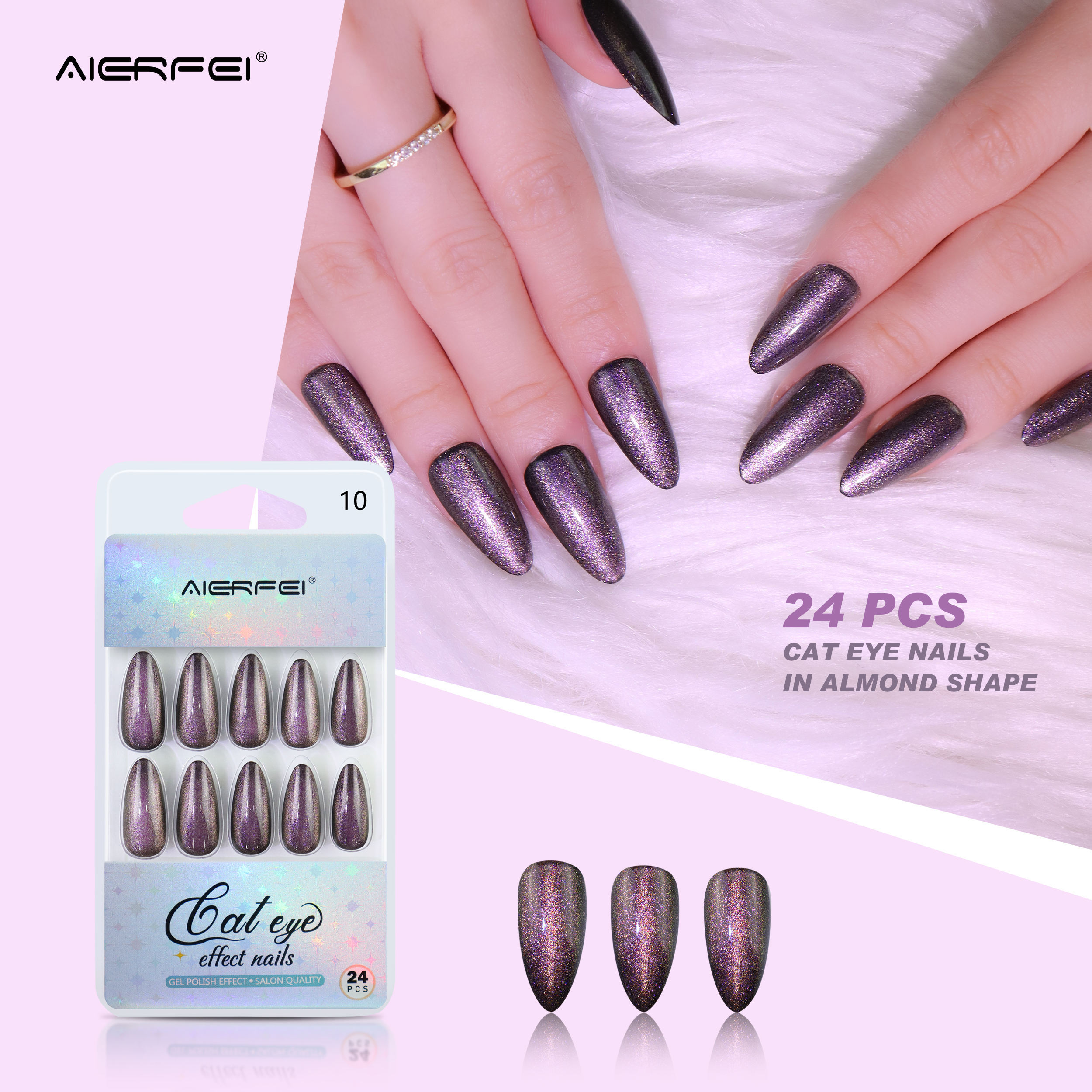 product name:: 24pcs Long almond cat eye nails