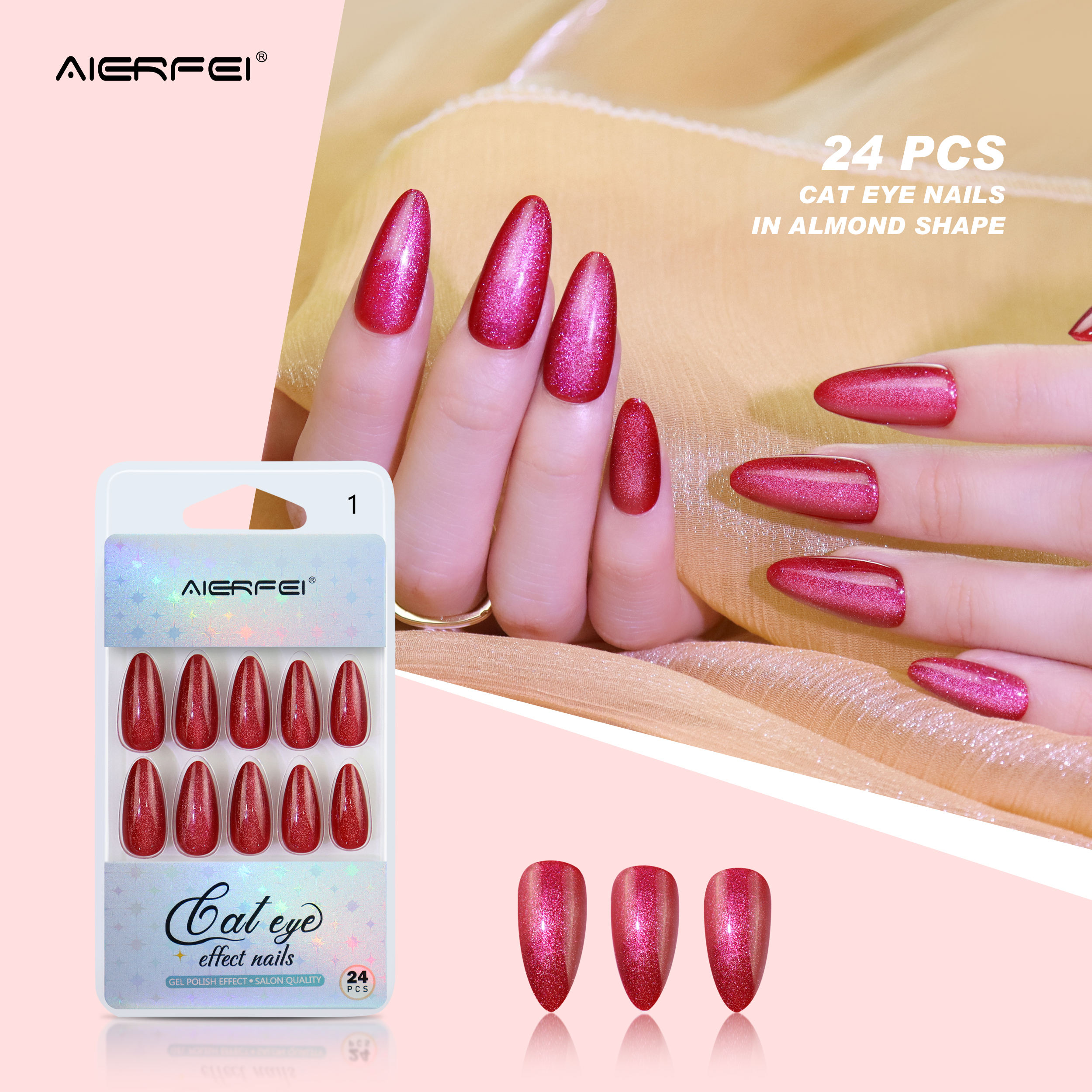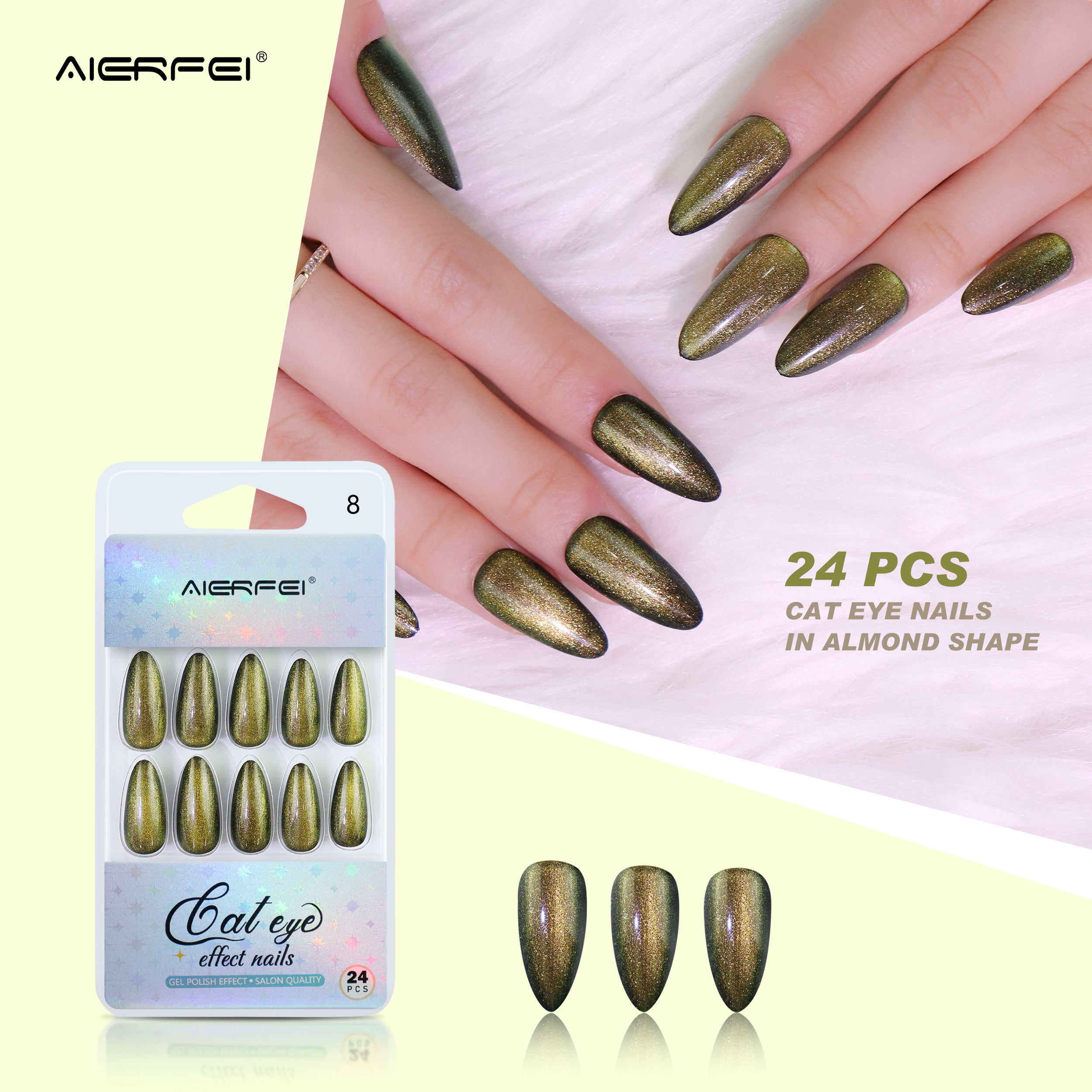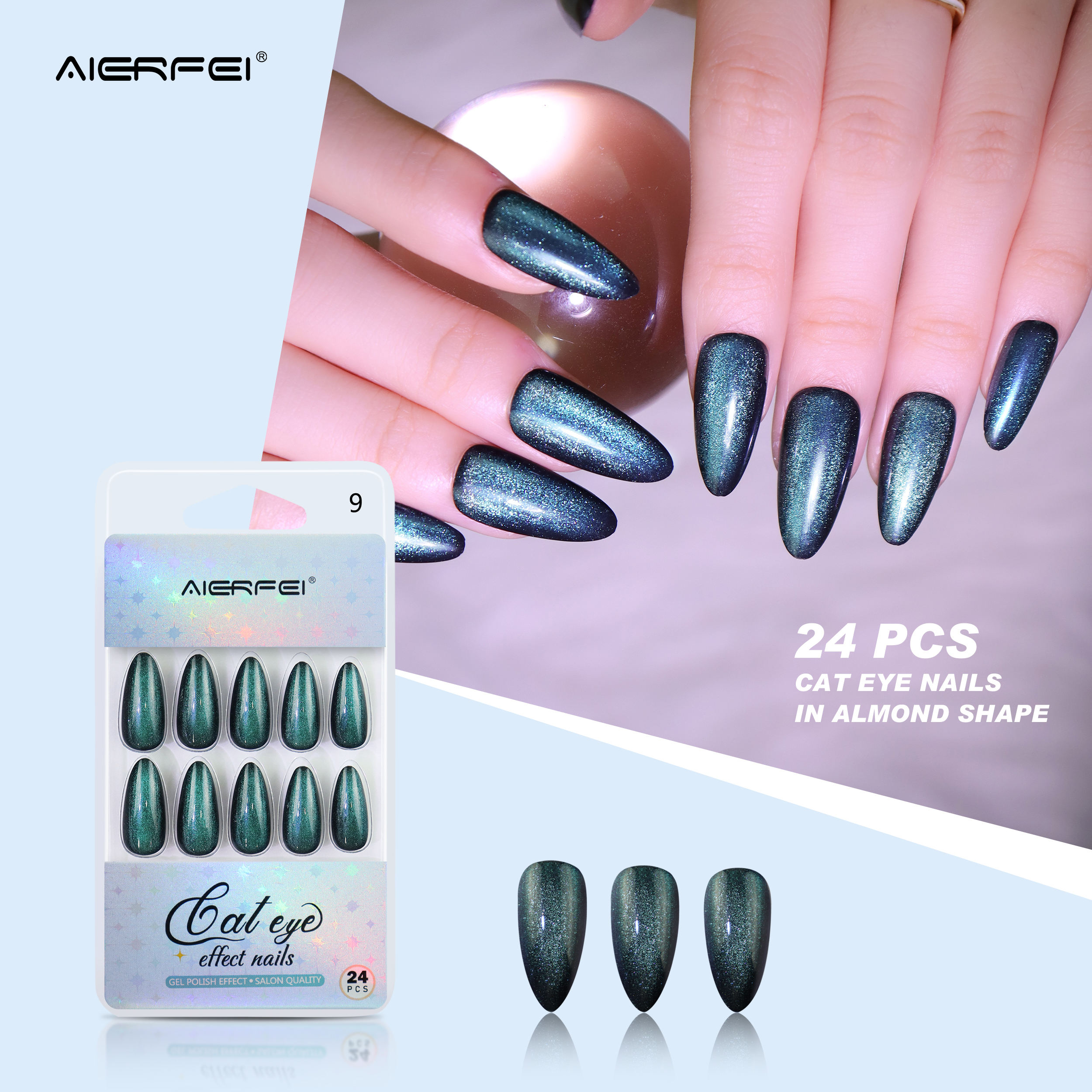 product name:: 24pcs Long almond cat eye nails