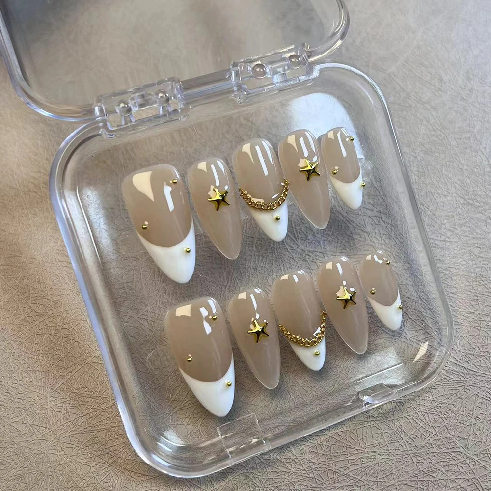 Product Name: Custom Handmade French Tip Reusable Press on Nails False Nails Wholesale Artificial Fingernails with Packaging Box