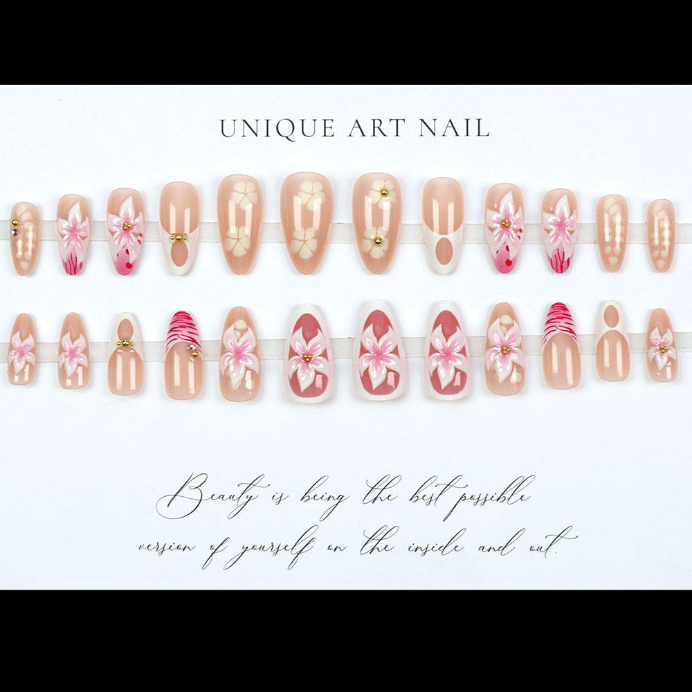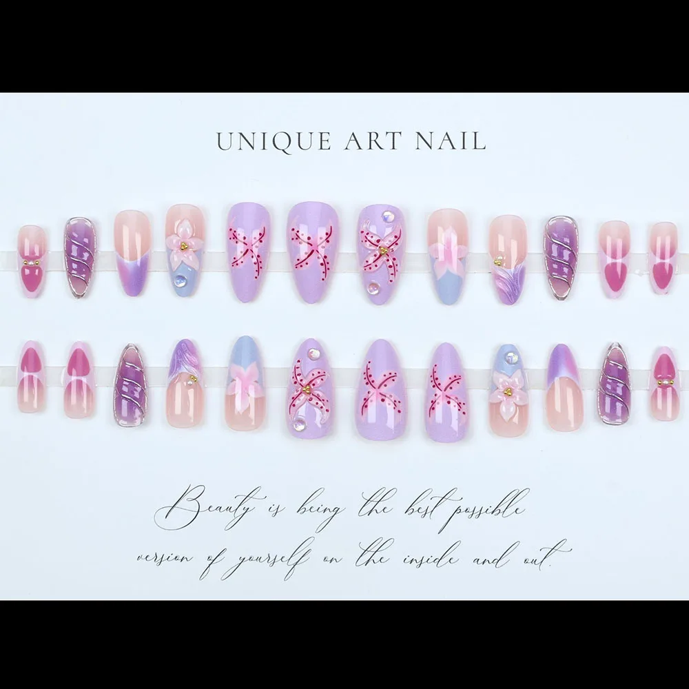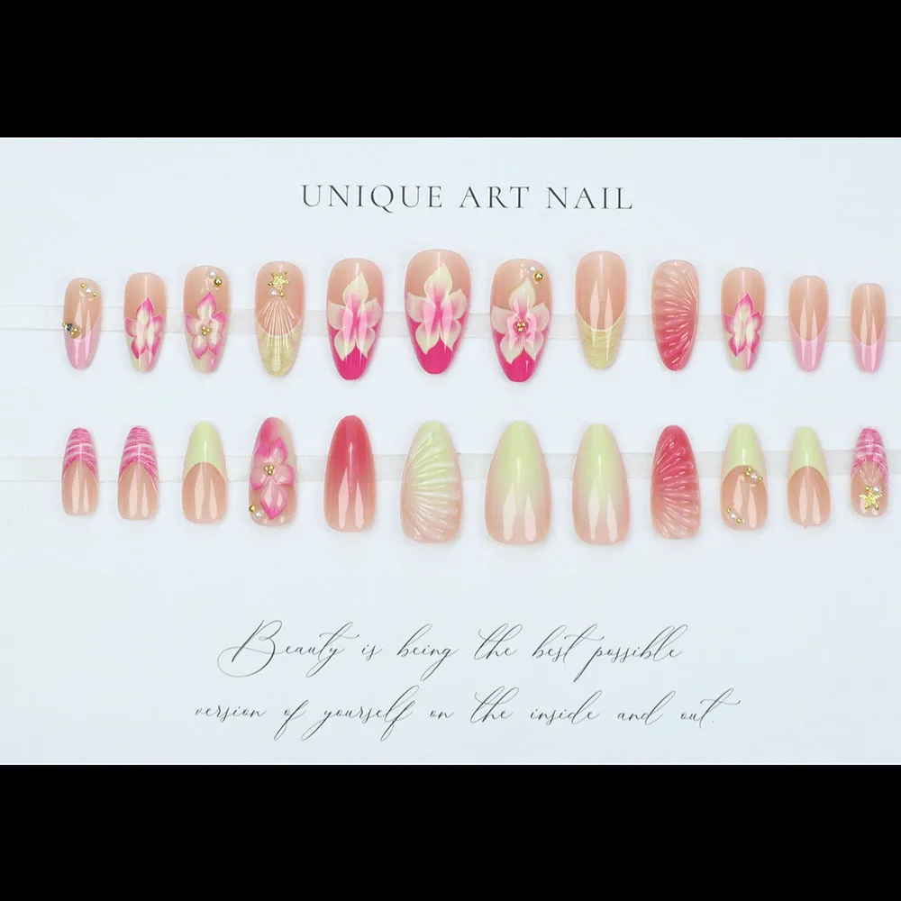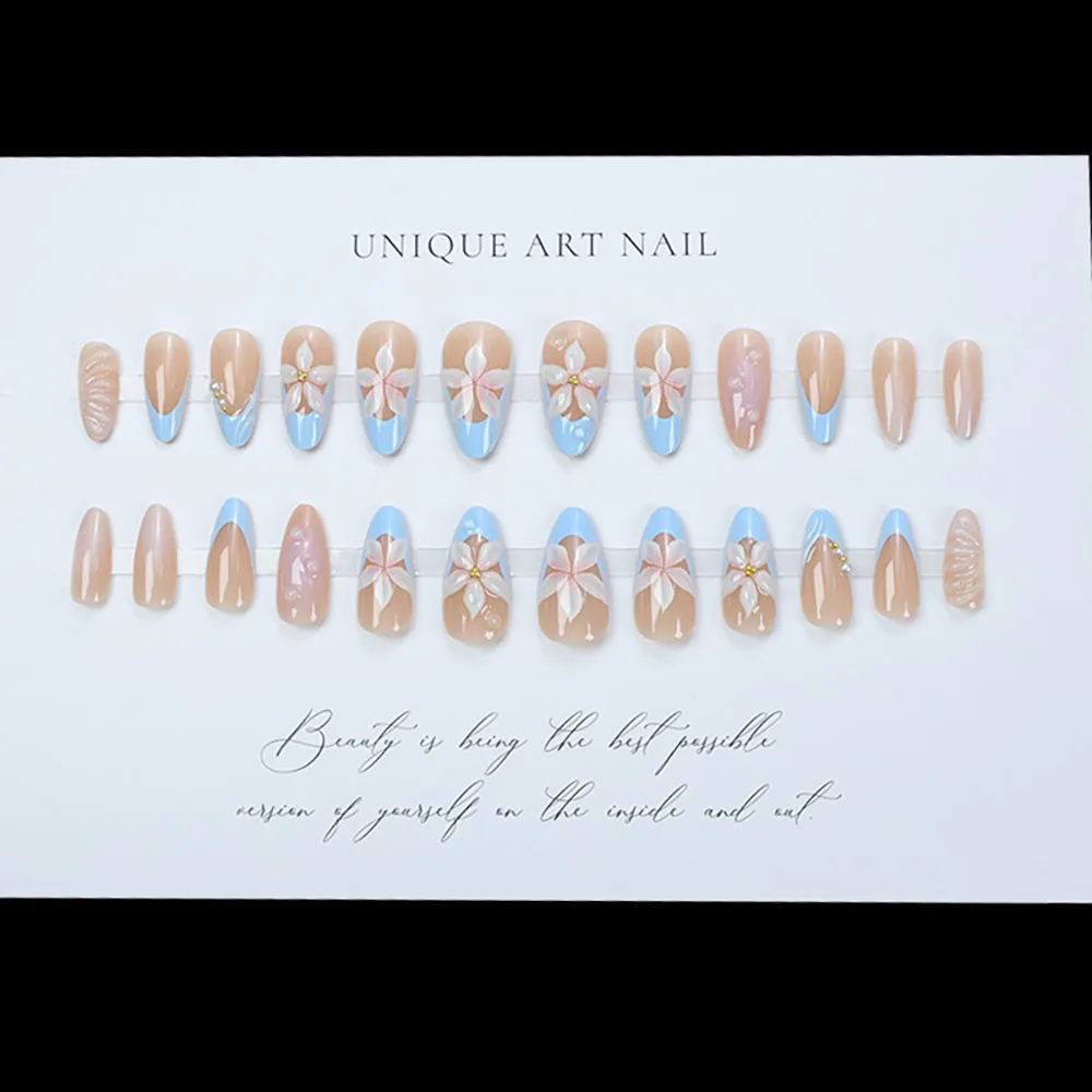 Product Name: Factory Price New 3d Press on Nails Wholesale 24pcs Custom Almond Handmade French Tips Fake Nails Art Artificial Fingernails