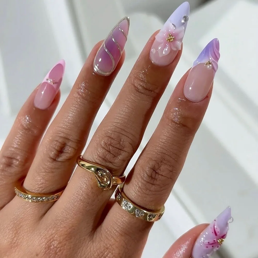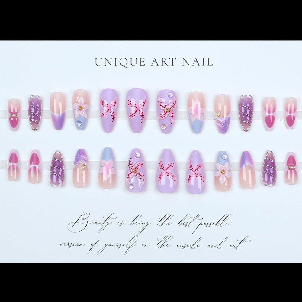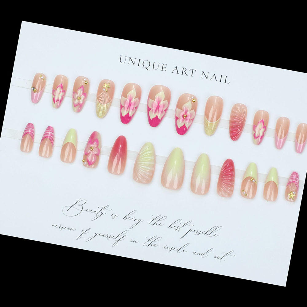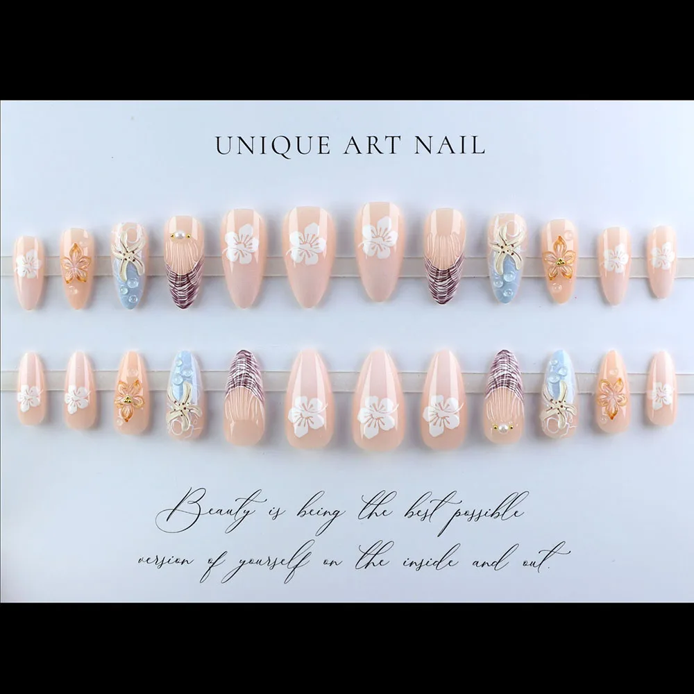 Product Name: Factory Price New 3d Press on Nails Wholesale 24pcs Custom Almond Handmade French Tips Fake Nails Art Artificial Fingernails