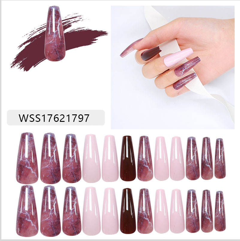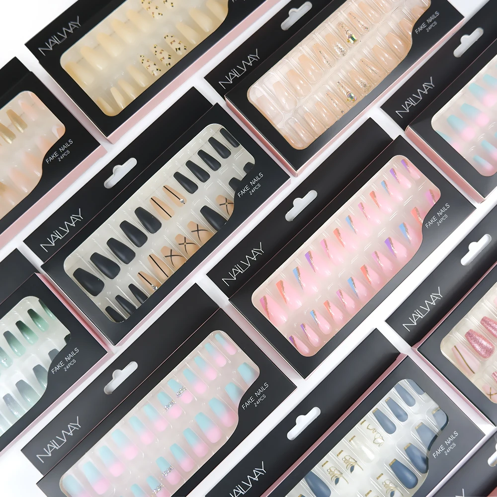 Product Name: High Quality Long Press On Nails Private Label Reusable 24 Pcs False Nails Custom
