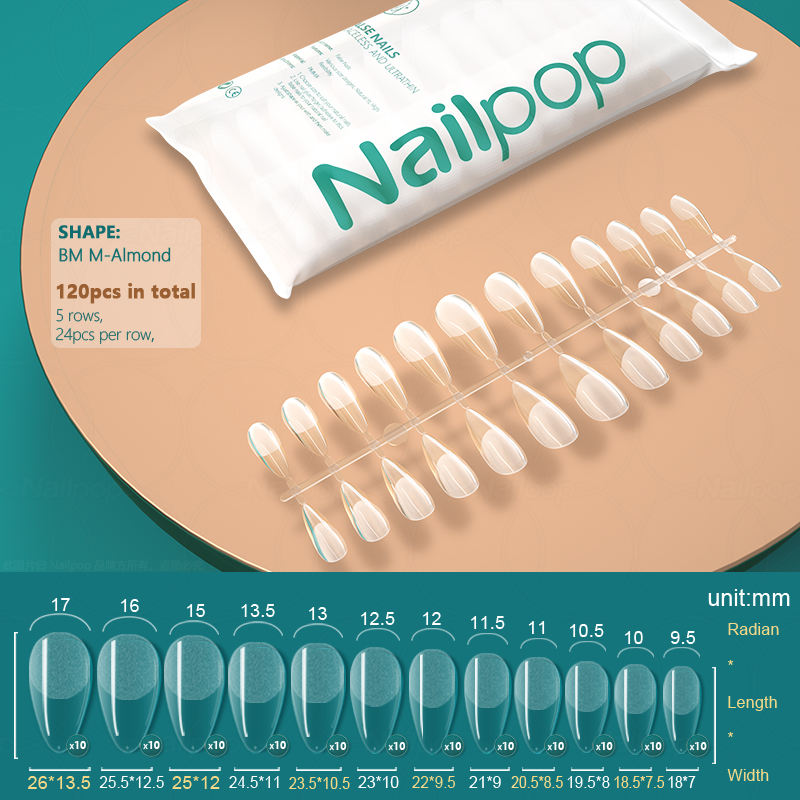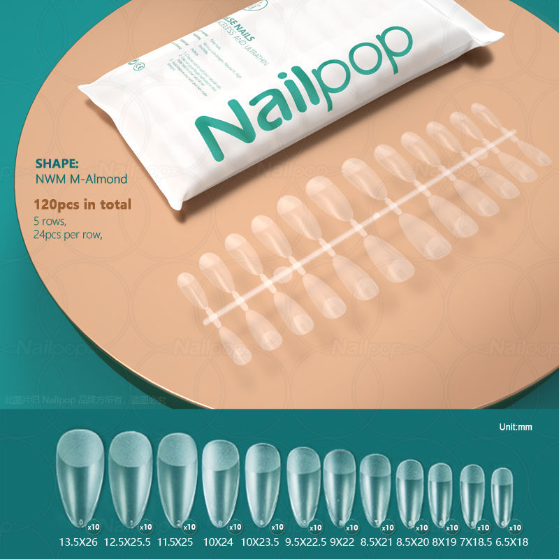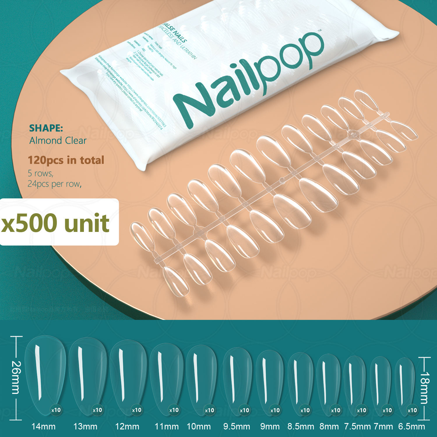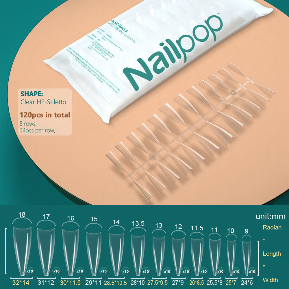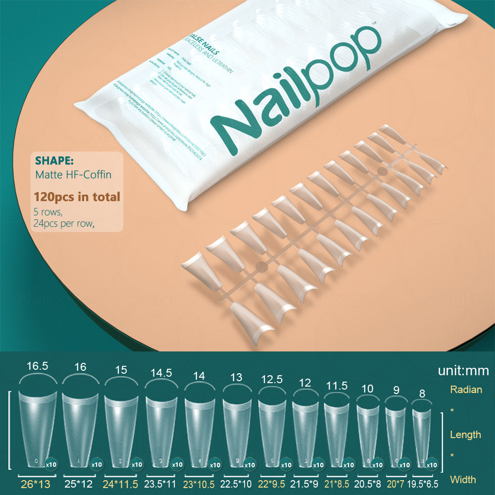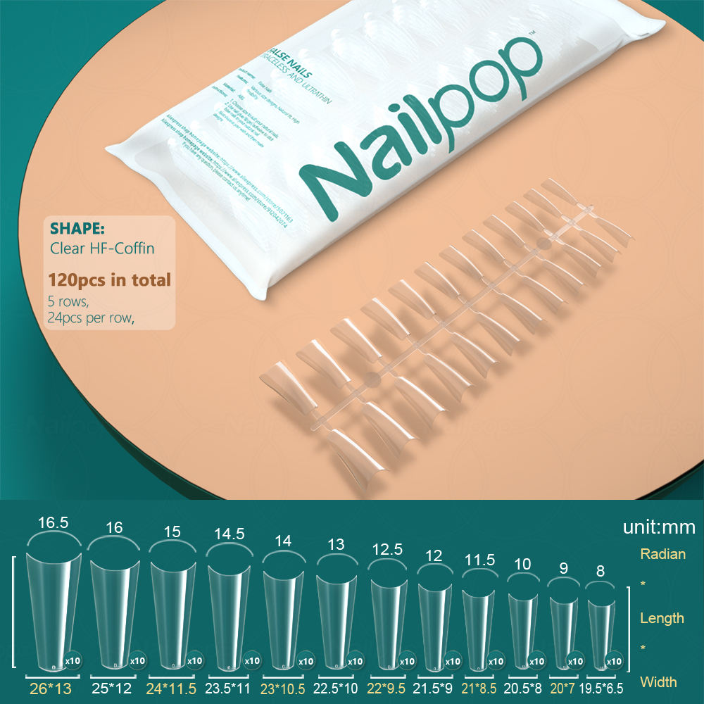 Nailpop 120pcs Transparent False Nails Acrylic Clear Artificial Fingernails Full Cover Medium Short Nails Coffin Nail Tips