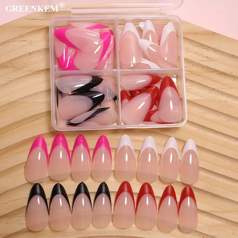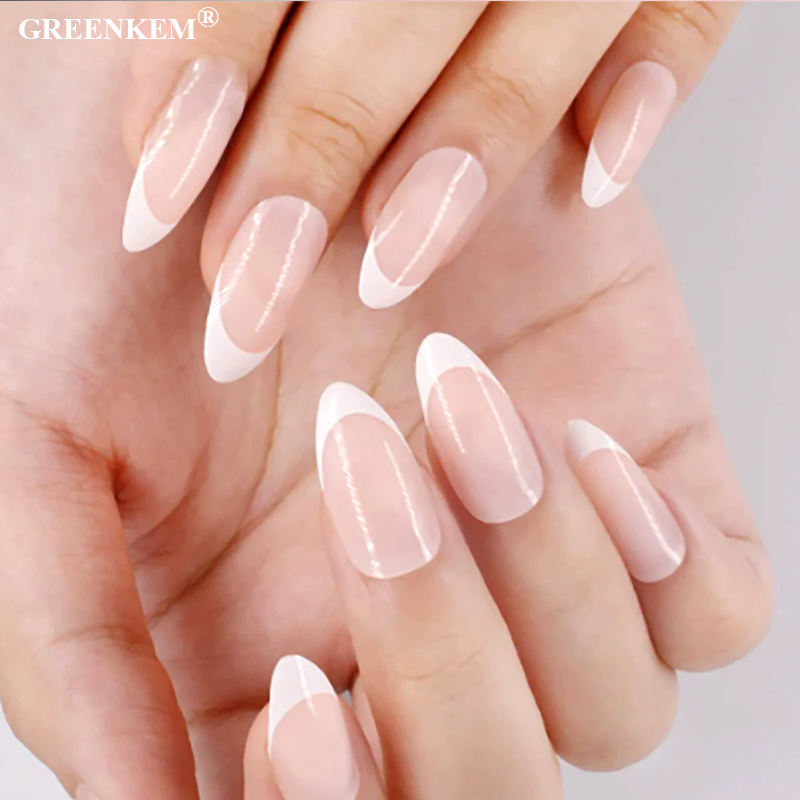 Plastic Wearable Nail False Short Almond Simple Elegant Art Design Durable Reusable Full Cover False Nails