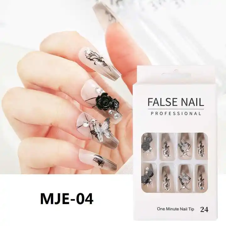 Wholesale Fashion 24 Pcs XXL Coffin Handmade Press on Nails Artificial Manicure False FakeNails