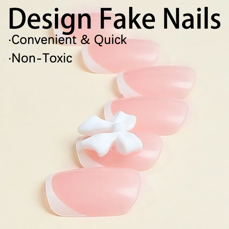 Wholesale New Hot Selling Salon Quality Custom Square Press on Nails Ombre Pink Base Simple French Style Daily False Nails