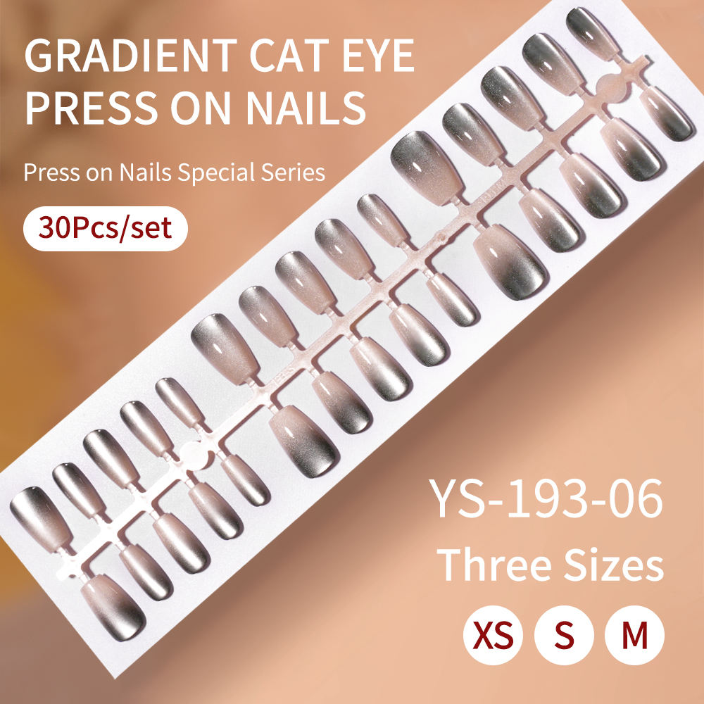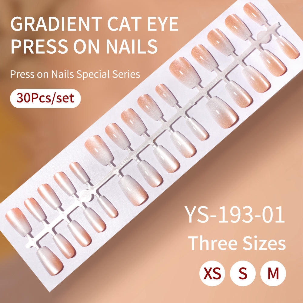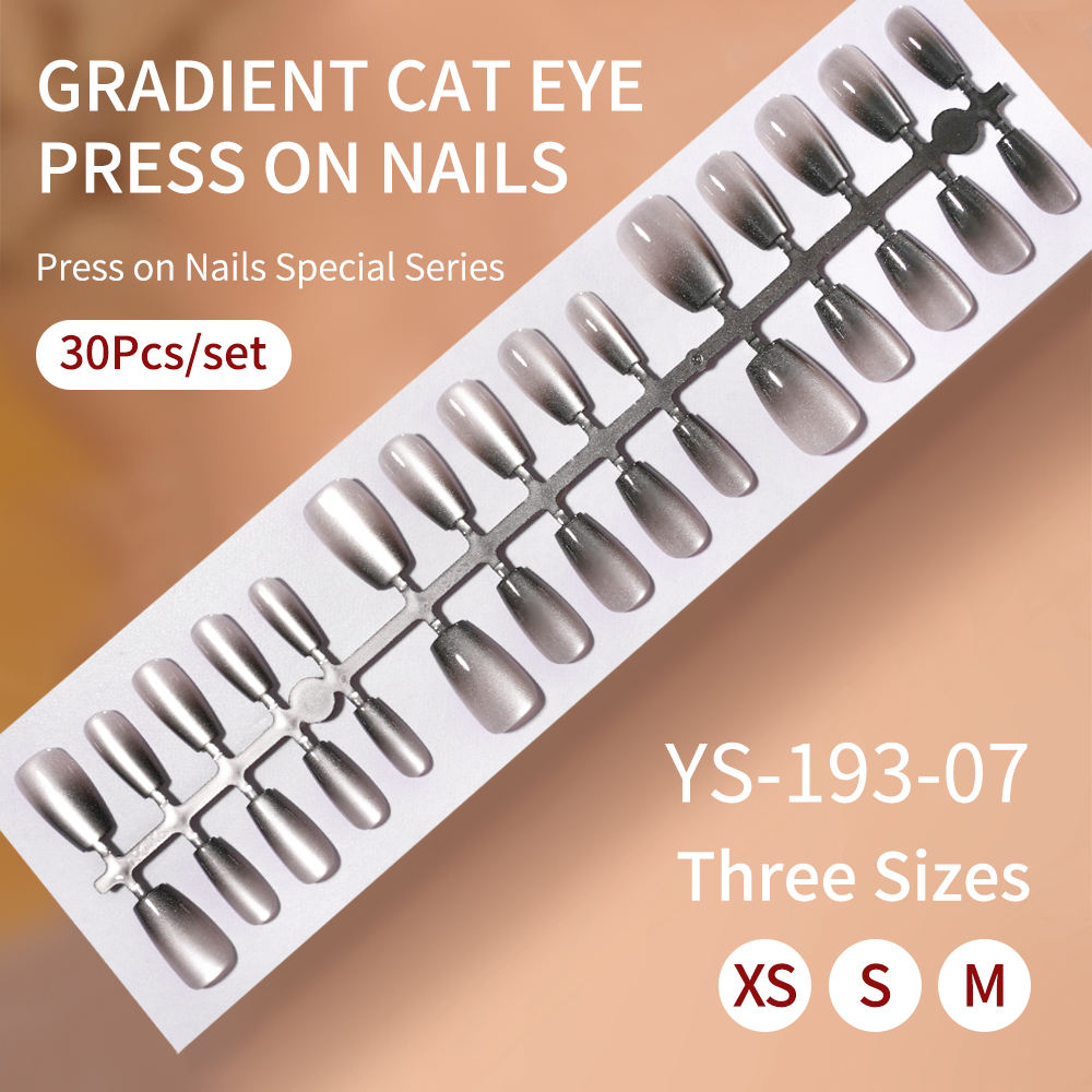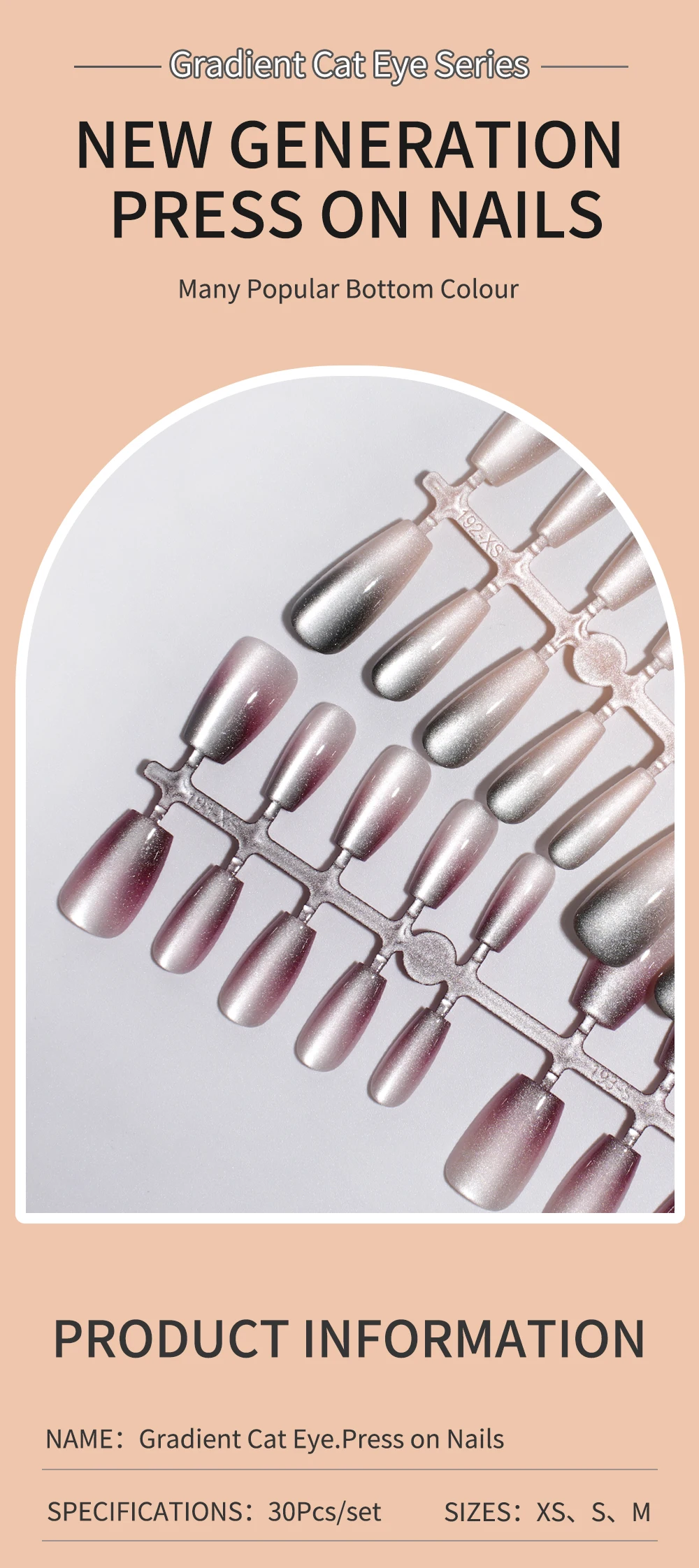 Wholesale Wear False Nails 30pcs Long and Short Coffin Gradient Cat Eye Press on Nails Tip