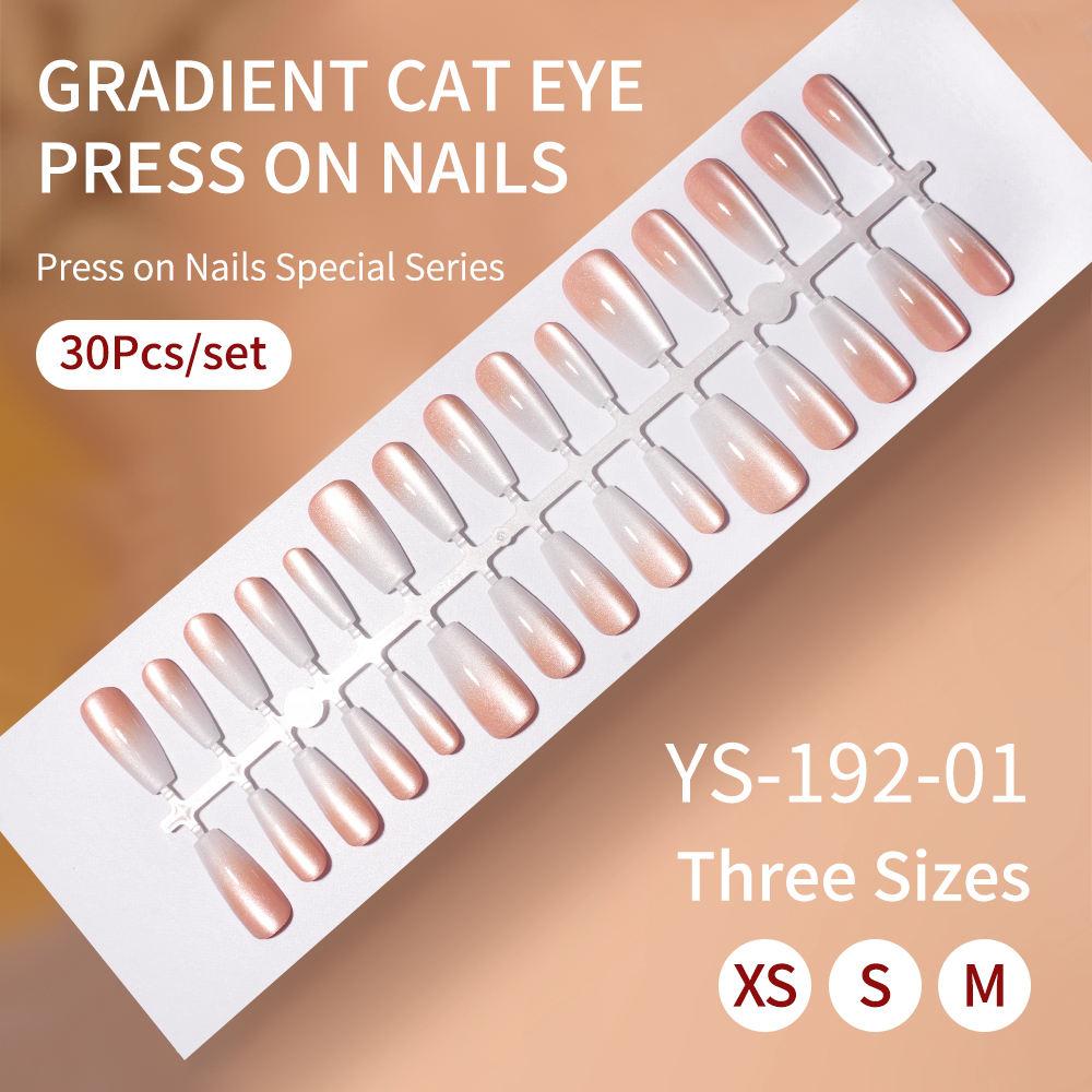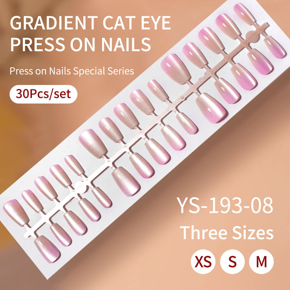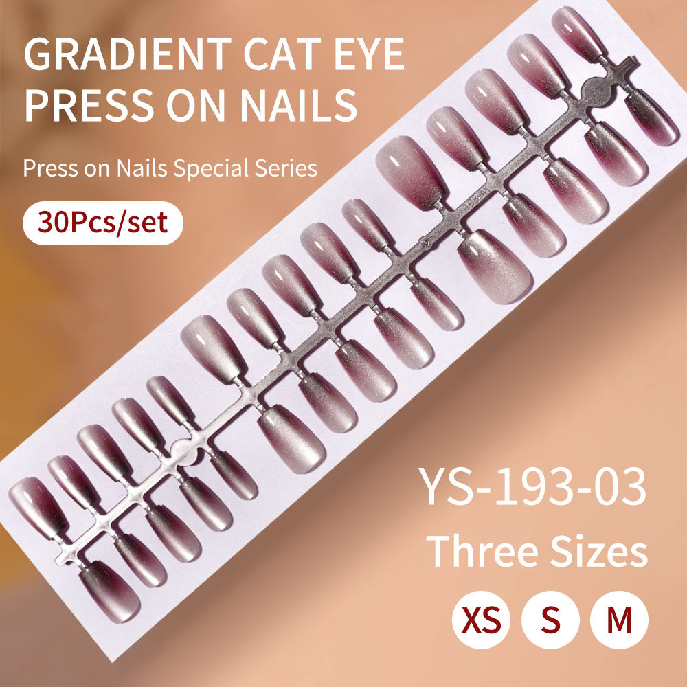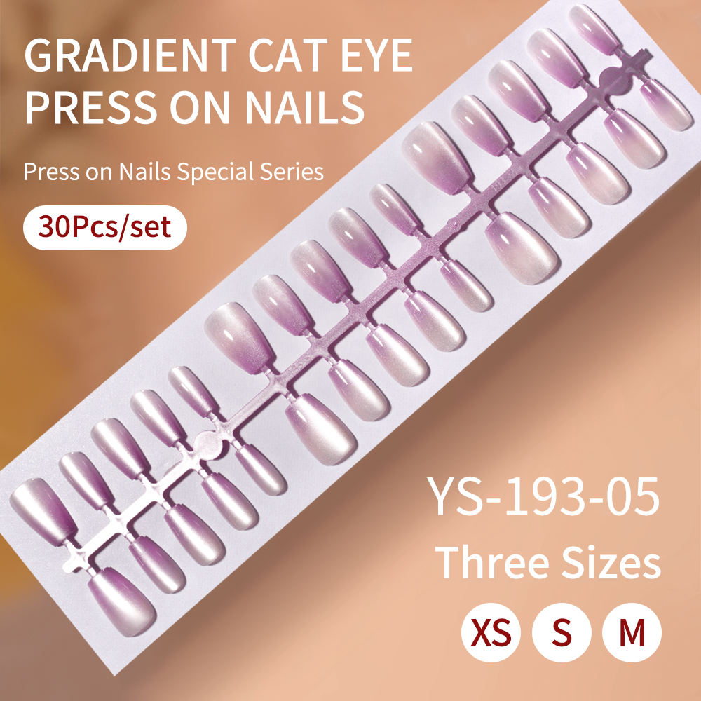 Wholesale Wear False Nails 30pcs Long and Short Coffin Gradient Cat Eye Press on Nails Tip